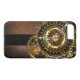 Antique, fantastic watches with gold and brass gears on a brown, rusty background. Steampunk style.