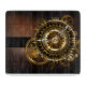 Antique, fantastic watches with gold and brass gears on a brown, rusty background. Steampunk style.