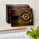 Antique, fantastic watches with gold and brass gears on a brown, rusty background. Steampunk style.