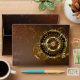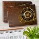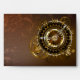 Antique, fantastic watches with gold and brass gears on a brown, rusty background. Steampunk style.