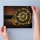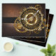 Antique, fantastic watches with gold and brass gears on a brown, rusty background. Steampunk style.
