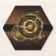Antique, fantastic watches with gold and brass gears on a brown, rusty background. Steampunk style.
