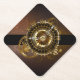 Antique, fantastic watches with gold and brass gears on a brown, rusty background. Steampunk style.