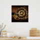 Antique, fantastic watches with gold and brass gears on a brown, rusty background. Steampunk style.