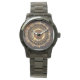 Antique, fantastic watches with gold and brass gears on a brown, rusty background. Steampunk style.