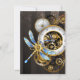 Steampunk Clock with Mechanical Dragonfly Holiday Card