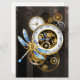 Steampunk Clock with Mechanical Dragonfly Holiday Card