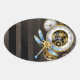 Steampunk Clock with Mechanical Dragonfly Oval Sticker