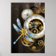 Steampunk Clock with Mechanical Dragonfly Poster