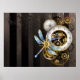 Steampunk Clock with Mechanical Dragonfly Poster