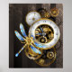 Steampunk Clock with Mechanical Dragonfly Poster