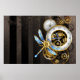 Steampunk Clock with Mechanical Dragonfly Poster