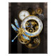 Steampunk Clock with Mechanical Dragonfly Poster