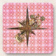 Rustic metal look design features a Steampunk style compass star on vintage pink patterned background