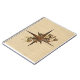 Rustic metal look design features a Steampunk style compass star with floral embellishments on vintage faux burlap background