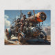 Here we have a vehicle in a Steampunk cross-country car race. Driven by two men, seated in tandem, this four-wheeled contraption, painted in dull reds and blues, is an amalgamation of steam, internal combustion, and jet engines, adorned with various contraptions that perform who-knows-what.