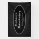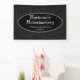 Versatile banner features dark grey striped background with centre custom text oval and is both masculine and elegant.  Perfect for a variety of Steampunk, Victorian, vintage and gothic themed parties, events, stores and more.