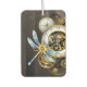 Antique dials with gold and brass gears, decorated with mechanical dragonfly on brown, striped background. Steampunk.