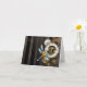 Antique dials with gold and brass gears, decorated with mechanical dragonfly on brown, striped background. Steampunk.