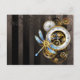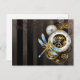 Antique dials with gold and brass gears, decorated with mechanical dragonfly on brown, striped background. Steampunk.
