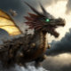 Awesome steampunk dragon steaming through the night.