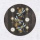 Antique dials and keys with gold and brass gears, decorated with mechanical, steampunk dragonflies on brown, striped background.