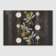 Antique dials and keys with gold and brass gears, decorated with mechanical, steampunk dragonflies on brown, striped background.