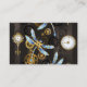Antique dials and keys with gold and brass gears, decorated with mechanical, steampunk dragonflies on brown, striped background.