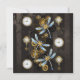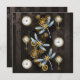 Antique dials and keys with gold and brass gears, decorated with mechanical, steampunk dragonflies on brown, striped background.