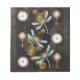 Antique dials and keys with gold and brass gears, decorated with mechanical, steampunk dragonflies on brown, striped background.