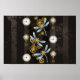 Steampunk Dragonflies on brown striped background Poster