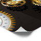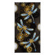 Antique dials and keys with gold and brass gears, decorated with mechanical, steampunk dragonflies on brown, striped background.
