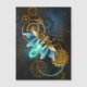 Steampunk firefly with blue transparent wings and green light bulb on worn, brown, textured background. Steampunk style.
