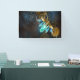 Steampunk firefly with blue transparent wings and green light bulb on worn, brown, textured background. Steampunk style.