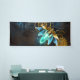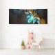 Steampunk firefly with blue transparent wings and green light bulb on worn, brown, textured background. Steampunk style.