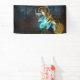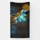 Steampunk firefly with blue transparent wings and green light bulb on worn, brown, textured background. Steampunk style.