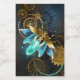 Steampunk firefly with blue transparent wings and green light bulb on worn, brown, textured background. Steampunk style.