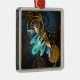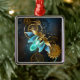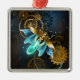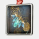 Steampunk firefly with blue transparent wings and green light bulb on worn, brown, textured background. Steampunk style.