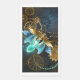 Steampunk firefly with blue transparent wings and green light bulb on worn, brown, textured background. Steampunk style.