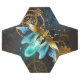 Steampunk firefly with blue transparent wings and green light bulb on worn, brown, textured background. Steampunk style.