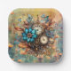 These beautiful paper plates are perfect for entertaining! Each features AI-generated Steampunk style flowers and timepieces in centre on a yellow wildflower background. Coordinating kitchen and table items available.