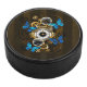 Steampunk Gears and Blue Butterflies Hockey Puck