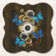 Steampunk Gears and Blue Butterflies Paper Coaster