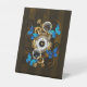 Steampunk Gears and Blue Butterflies Pedestal Sign