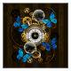 Steampunk Gears and Blue Butterflies Poster