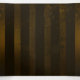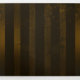 Composition of round steampunk clock with black Roman numeral dial, decorated with gold and brass gears, blue Morpho butterflies and damaged lenses on brown striped background. Steampunk style.