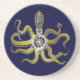 This tentacled steampunk sea monster has eight wire-like gold appendages, a central silver gear and plenty of gears and bolts making up its head, eyes and suction cups. It's a robot octopus / kraken, a metal machine monster for anyone who likes geeky science-fiction / fantasy creatures. Dark-blue background colour is customisable.