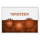 Offbeat and quirky Steampunk Gears Wedding Table Number Card in dark orange featuring a trio of gears and a grungy chequered pattern. This unique and stylish wedding table number card is perfect for your alternative steampunk themed wedding! Easy to customise, simply add the appropriate table number(s) in the text field provided. Click on "Customise It" to find additional personalisation options.
