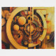 A bold steampunk abstract artwork featuring interlocking gears, circular mechanisms, metallic spheres, and engineered structures, all rendered in luminous gold and warm industrial tones. The layered geometry and mechanical depth create a striking retro-futuristic aesthetic perfect for posters, tech accessories, home decor, apparel, and gifts for fans of steampunk and mechanical art.