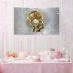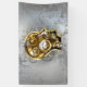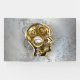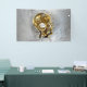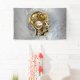 Conceptual, mechanical, human head with antique manometer and metal gears against gray industrial background. Steampunk style.